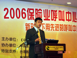 。。2006年10月18日,2006保險(xiǎn)業(yè)呼叫中心應(yīng)用暨電話營銷高峰研討會(huì)在北京天鴻科園大酒店隆重召開,以下是大會(huì)主題演講的相關(guān)圖片報(bào)道: