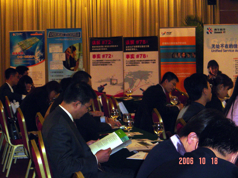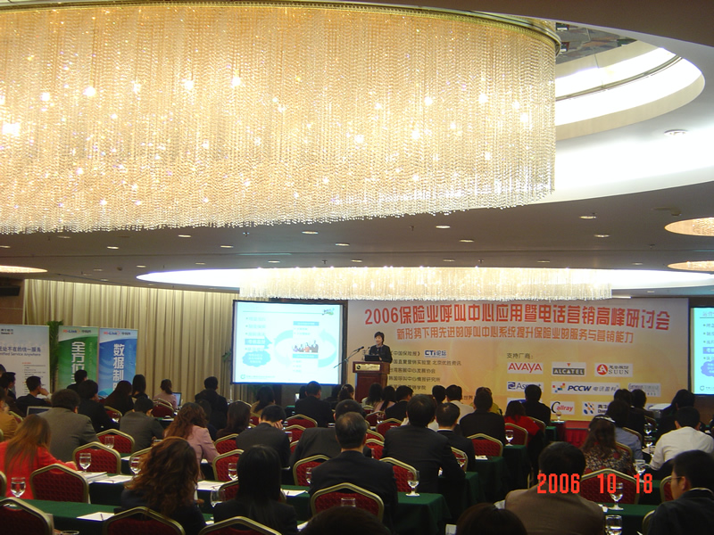 。。2006年10月18日,2006保險(xiǎn)業(yè)呼叫中心應(yīng)用暨電話營銷高峰研討會(huì)在北京天鴻科園大酒店隆重召開,以下是會(huì)議現(xiàn)場(chǎng)的相關(guān)圖片報(bào)道: