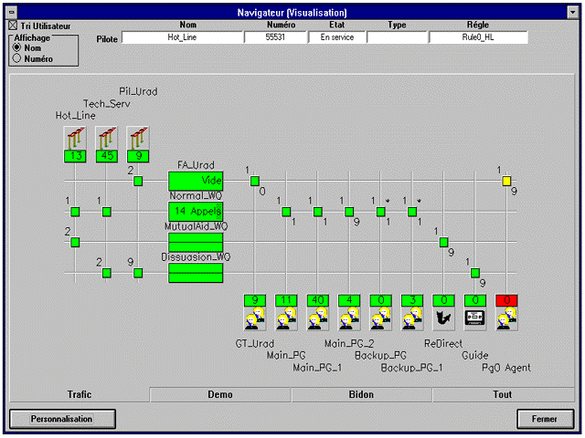 A4400 CCS 呼叫中心監(jiān)管系統(tǒng)是A4400 CCD 的完美配套設(shè)備。此監(jiān)管系統(tǒng)組件提供最新實(shí)時(shí)監(jiān)控功能。經(jīng)理和主管不僅能很好協(xié)調(diào)呼叫處理過程,而且也能觀察服務(wù)水準(zhǔn)、話務(wù)量情況等,并能在現(xiàn)場(chǎng)采取相應(yīng)的措施。