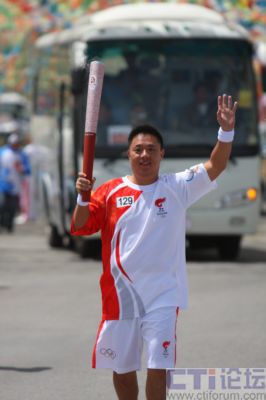 新太董事長(zhǎng)劉偉在青海湖傳遞奧運(yùn)火炬
