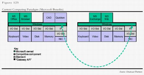 今天,由于業(yè)內各企業(yè)普遍明白了控制價值鏈中操作平臺和應用平臺的重要性,因此靠壟斷本身來贏利容易受到全行業(yè)的抵制,微軟的策略是在操作平臺和應用平臺上形成壟斷后,靠應用來贏利,這樣大大增加了贏利的隱蔽性,業(yè)界比較容易接受!