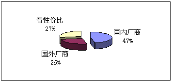 。5)向誰購買:鑒于國內(nèi)并沒有知名度很高的CRM實施廠商,而國外的著名廠商在國內(nèi)的品牌宣傳也不足,所以我們的調(diào)查表中只設(shè)了:國內(nèi)廠商、國外廠商和根據(jù)性價比進行選擇三個項目,與購買能力對照,預(yù)期實施金額在100萬以下的企業(yè),一般側(cè)重國內(nèi)廠商,而實施金額在100萬以上企業(yè)則側(cè)重國外企業(yè)。