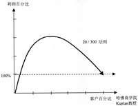 對客戶群的分析,經(jīng)濟(jì)理論界有一個著名的80-20理論,即在一個企業(yè)中,通常是20%的客戶貢獻(xiàn)了80%的利潤,而有可能40%的客戶加起來的利潤還不到1%;而依照20-300理論,實際上20%的客戶,貢獻(xiàn)著企業(yè)300%的利潤,言外之意就是說,剩下的客戶可能是“吃”掉利潤的人群。但是對于剩下的80%客戶,銀行可能要花費更多的人力、物力去提供服務(wù),所以實際上銀行或企業(yè)很有可能在做虧本買賣。因此,分析客戶群,調(diào)配資源非常重要(如下圖所示)。