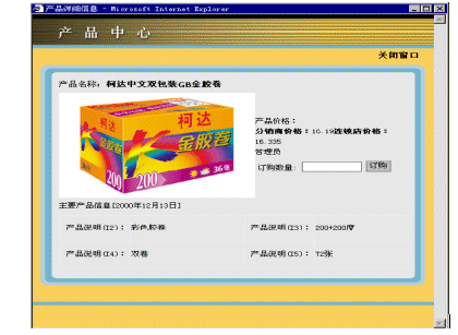 在用戶選擇一個(gè)分類時(shí),此分類下的產(chǎn)品將會(huì)被列出。用戶可以直接在想要購買的產(chǎn)品后填寫購買數(shù)量,一次可以填寫多個(gè)產(chǎn)品。這樣在處理產(chǎn)品訂購的時(shí)候,大大的提高了效率。同樣,用戶也可以點(diǎn)擊詳細(xì)信息鏈接查看產(chǎn)品的詳細(xì)信息(參看圖2)。