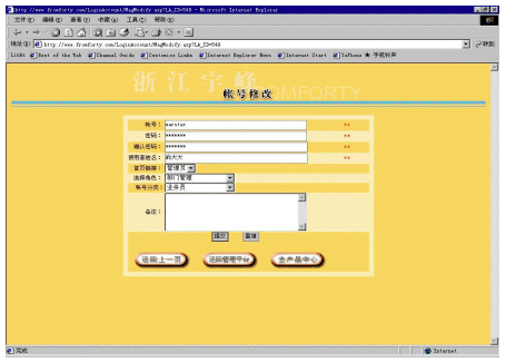 帳號(hào)系統(tǒng)主要是為適應(yīng)一個(gè)分銷商內(nèi)部會(huì)有多個(gè)不同等級(jí)的人使用這個(gè)系統(tǒng)。對于分銷商而言,它可以建立多個(gè)帳號(hào),并為每個(gè)帳號(hào)分配不同的權(quán)限,以及每個(gè)帳號(hào)可以對應(yīng)管理不同下屬企業(yè)(參看圖5和圖6)。還可以為不同的帳號(hào)提供不同的進(jìn)入頁面,使得用戶使用更加方便。