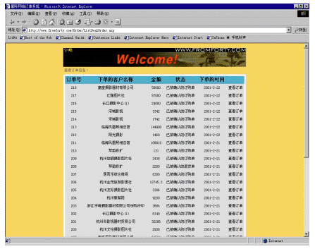 訂購單查閱可以使用戶隨時(shí)都能查看以前和現(xiàn)在的訂購記錄,并且可以查詢訂單的詳細(xì)信息。對于尚未確認(rèn)的訂購單和退貨單,可以在此確認(rèn)或刪除。