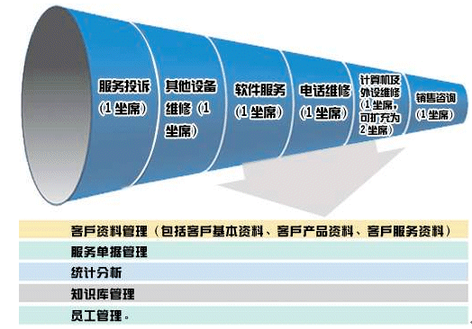 每個(gè)模塊大致都有如下功能:客戶資料管理(包括客戶基本資料、客戶產(chǎn)品資料、客戶服務(wù)資料),服務(wù)單據(jù)管理,統(tǒng)計(jì)分析,知識(shí)庫管理,員工管理。但每個(gè)模塊所需記錄的內(nèi)容、服務(wù)處理流程不盡相同。