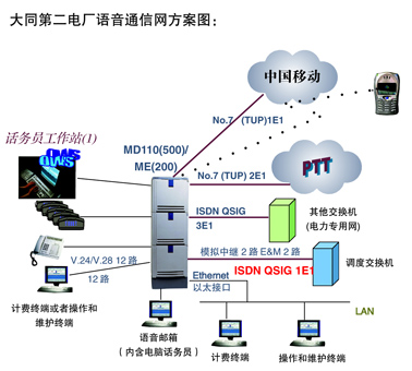 大同第二發(fā)電廠二期擴建需要建設(shè)一個新的語音交換系統(tǒng),既用于電廠內(nèi)行政通信,又可以成為廠內(nèi)和公網(wǎng)語音通信匯接中心。