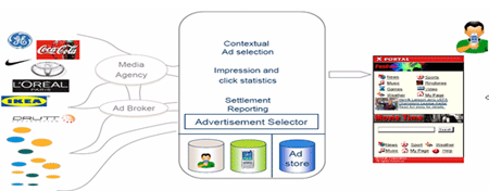 愛立信移動(dòng)互聯(lián)網(wǎng)業(yè)務(wù)營(yíng)銷平臺(tái)(MSDP)有一整套對(duì)廣告提供商和廣告發(fā)布的管理手段,可以根據(jù)用戶偏好,在瀏覽過(guò)程中個(gè)性化插入廣告,實(shí)現(xiàn)精準(zhǔn)投放(如在體育類信息服務(wù)中使用體育用品廣告);或者基于規(guī)則定義廣告動(dòng)態(tài)插入的位置、時(shí)段、條件、頻度等(如按時(shí)間段自動(dòng)更換廣告內(nèi)容);還可在頁(yè)面瀏覽中動(dòng)態(tài)加入運(yùn)營(yíng)商標(biāo)識(shí)或其它預(yù)定內(nèi)容。