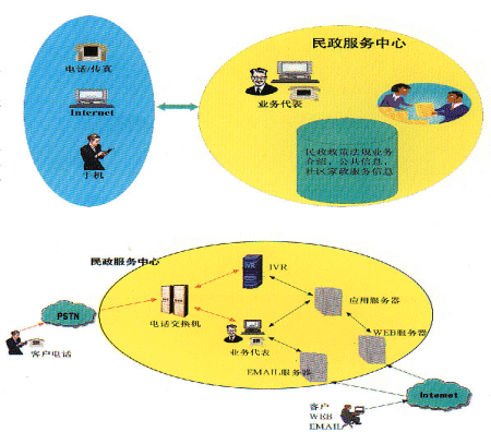 民政社區(qū)服務中心利用CTI技術、網(wǎng)絡技術、數(shù)據(jù)庫技術、WEB技術及多種接入方式:電話、呼叫器、傳真、互聯(lián)網(wǎng)、移動互聯(lián)網(wǎng)、手機等,為廣大居民提供便捷、優(yōu)質(zhì)的社區(qū)服務。