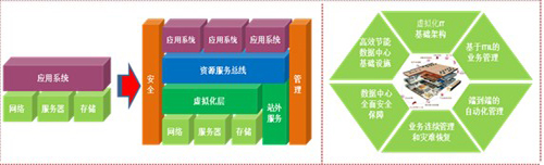 企業(yè)的發(fā)展和業(yè)務(wù)的創(chuàng)新越來越離不開IT技術(shù)的應(yīng)用,傳統(tǒng)的以項目為建設(shè)單元的數(shù)據(jù)中心造成了煙囪式的建設(shè)、分布式的開發(fā)、分離式的運維,使眾多企業(yè)的 IT 形成了復(fù)雜的、孤立的架構(gòu),信息孤島隨處可見,無法提供靈活、安全和易于擴展的應(yīng)用環(huán)境,從多方面影響了業(yè)務(wù)運營的效果。隨著商業(yè)模式的不斷創(chuàng)新、IT技術(shù)的不斷發(fā)展,業(yè)務(wù)與IT日益密切,傳統(tǒng)的數(shù)據(jù)中心建設(shè)已經(jīng)無法滿足未來業(yè)務(wù)發(fā)展的需要,難于部署新的應(yīng)用與服務(wù),設(shè)備利用率低下,業(yè)務(wù)彈性較難,無法保證系統(tǒng)和應(yīng)用的可用性和可靠性,同時不斷上升的能源成本和能源需求、機房空間需求阻礙了業(yè)務(wù)的發(fā)展。