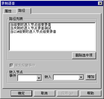 有兩種方式,一種是通過(guò)ZingServ的錄制語(yǔ)音模塊來(lái)靈活設(shè)置錄音的起點(diǎn)、終點(diǎn)和錄音長(zhǎng)度,如客戶(hù)投訴和客戶(hù)建議大都通過(guò)這種方式來(lái),這時(shí)錄音文件的名稱(chēng)可以使用自定義變量,便于在二次開(kāi)發(fā)中使用。