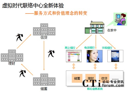 所以,英立訊提出的 “感•動(dòng)中心”實(shí)際代表了未來(lái)聯(lián)絡(luò)中心的發(fā)展方向,那就是:聯(lián)絡(luò)中心的全媒體溝通方式代表了新一代“人機(jī)交互”的通訊模式,將逐步替代“人人交互”的傳統(tǒng)柜員模式。以金融行業(yè)為例,融合電話(huà)銀行和網(wǎng)上銀行的電子銀行業(yè)務(wù),正在替代越來(lái)越多的柜臺(tái)業(yè)務(wù),80%以上的柜臺(tái)業(yè)務(wù)通過(guò)電話(huà)或網(wǎng)絡(luò)都能辦妥,同時(shí)銀行可以通過(guò)電話(huà)外呼方式進(jìn)行產(chǎn)品銷(xiāo)售的規(guī)模連年成倍增長(zhǎng),電話(huà)渠道服務(wù)正成為商業(yè)銀行業(yè)績(jī)上升的新增長(zhǎng)點(diǎn)。