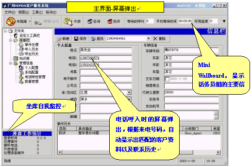 當客戶的電話被轉(zhuǎn)到客戶服務人員時,客戶的所有相關信息將自動彈出顯示在服務人員的電腦屏幕上,包括歷史接觸記錄信息等,這樣就能提供最具有針對性和高效率的服務。如果是新客戶,那么服務人員將即時錄入信息,動態(tài)擴充數(shù)據(jù)庫。