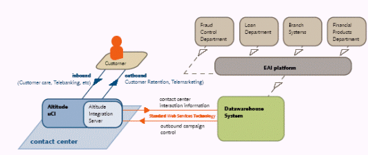 在線銀行要求Altitude Software推薦一個適合的和集成的解決方案。替代建議昂貴的EAI(企業(yè)應用集成)平臺,Altitude推薦使用標準的網(wǎng)絡服務技術(shù),與Altitude uCI產(chǎn)品完全兼容。