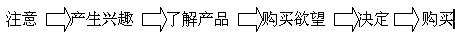 另外在其它的銷售渠道上,如電視、廣播、報(bào)紙等,他們對市場目標(biāo)的準(zhǔn)確度都是不高的,因?yàn)檫@樣的原因,也無法對目標(biāo)市場作掌控和測試,雖然他們可以很快速的擴(kuò)展市場,對市場產(chǎn)生很大的響應(yīng)力,但如果沒有很好的市場營銷與品牌整體性和長期性規(guī)劃,也很快的會變成曇花一現(xiàn),歷史中的記憶,這些渠道的成本也是最高的,所以不是所有的企業(yè)都能一體適用的,尤其是中小型企業(yè)是無法長期負(fù)擔(dān)的。誠如在之前的文章里面分析所講的,最好的銷售效果是一拉一推的力量,用多媒體感官性及理性的獲取消費(fèi)者的注意力,再配合快速效能的主動銷售,往往能將營銷的效果提升到最高的層面。將到這兒,就不得不順帶提到消費(fèi)者購買的行為模式。我們將消費(fèi)者對購買的心理和行為分為幾個階段: