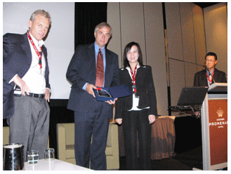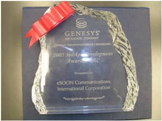 在2006年8月結束的澳洲墨爾本G-Force會議上,Genesys將 “2005年亞太地區(qū)最佳市場拓展”(2005 Market Development Award,APAC)獎項授予億迅,億迅總裁李冰影女士出席頒獎儀式并代表公司領取該獎。