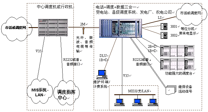 4. 系統(tǒng)造價(jià)低,應(yīng)用廣泛:非常適合解決電力變電站星型、分布式、無(wú)人值守站的電話和調(diào)度問題,可完全代替PCM設(shè)備,適合變電站、縣級(jí)調(diào)度系統(tǒng)、電力公司等,為其提供低成本、高性能的電話和調(diào)度解決方案。 非H20-20交換機(jī)可采用背對(duì)背的方式或者PRI、NO.1信令方式連接。