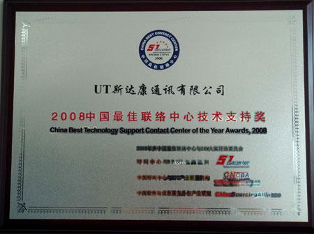UT斯達(dá)康獲"2008中國(guó)最佳聯(lián)絡(luò)中心技術(shù)支持獎(jiǎng)"