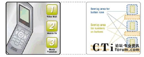 互作用提出了更進(jìn)一步的挑戰(zhàn)。能夠使用戶訪問多個 TV 頻道以及獲得其他服務(wù)的視頻門戶,是一個很好的研究實(shí)例。視 頻門戶顯示了基于每個用戶活動、訪問權(quán)限、服務(wù)描述等的服務(wù)菜單。一般來說,菜單是有限列表,用戶通過在手持終端 按下相應(yīng)的鍵來進(jìn)行選擇 (圖2.通過示意圖說明了動態(tài)菜單的映射方法)。為了創(chuàng)建菜單,應(yīng)用程序控制了基礎(chǔ)架構(gòu),而該 基礎(chǔ)架構(gòu)動態(tài)地生成了有限列表,并在當(dāng)前的視頻流頂端顯示為一個靜態(tài)覆蓋圖。相同技術(shù)可用于顯示基于用戶活動或位 置進(jìn)行品牌和廣告宣傳的 logo 或文本。