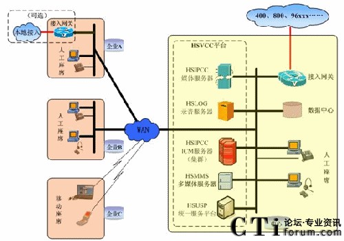 - 接入部署:客戶只需確定中繼接入的號碼(包括400、800、95xxx等)、規(guī)模,通過運營商將號碼指向產(chǎn)業(yè)基地統(tǒng)一接入平臺即可完成部署。