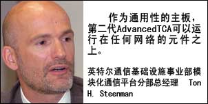 “目前我們是業(yè)內第一家推出第二代AdvancedTCA產品的廠家”,英特爾通信基礎設施事業(yè)部模塊化通信平臺分部(MCPD)總經理Ton