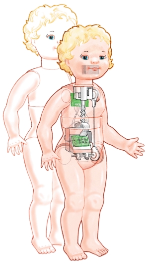 從機(jī)械上來說,夢想娃娃只是件簡單的藝術(shù)品。里面有三個(gè)馬達(dá):一個(gè)用來走路,一個(gè)用來成長,一個(gè)用來動(dòng)嘴。爬行和走路是由古怪的凸輪完成的。凸輪向玩具的某邊傾斜的時(shí)候玩具另一邊的手和腳就會(huì)向前移動(dòng)。然后凸輪又向另一邊傾斜,這邊的手腳又向前移動(dòng),這樣,玩具就能夠爬行和走路了。