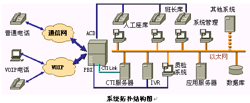 交換機實現(xiàn)電話呼入、呼出和話務管理等功能;提供自動排隊機系統(tǒng),用于實現(xiàn)對來話的均衡分配;呼叫管理系統(tǒng),用于有效管理所有話務;支持IVR;提供CTI