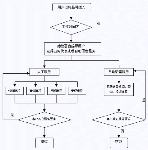 系統(tǒng)提供無人值守的24小時(shí)自動(dòng)語音服務(wù),使用樹型結(jié)構(gòu),讓每一語音通道按照設(shè)定的流程進(jìn)行循序、分支或跳轉(zhuǎn),自動(dòng)語音逐步引導(dǎo)來話者選擇電話按鍵,實(shí)現(xiàn)信箱留言、投訴舉報(bào)錄音、投訴處理結(jié)果查詢、自動(dòng)咨詢、民意調(diào)查等。當(dāng)用戶撥通12345電話并選擇自動(dòng)服務(wù)時(shí),系統(tǒng)自動(dòng)播放類似下面的引導(dǎo)語"選擇市長(zhǎng)(縣長(zhǎng))信箱留言請(qǐng)按1,自動(dòng)投訴舉報(bào)請(qǐng)按2,投訴查詢請(qǐng)按3,服務(wù)咨詢請(qǐng)按4,民意調(diào)查請(qǐng)按5"。系統(tǒng)還可根據(jù)咨詢者要求,以自動(dòng)傳真、電子郵件等方式自動(dòng)發(fā)送有關(guān)查詢結(jié)果資料。