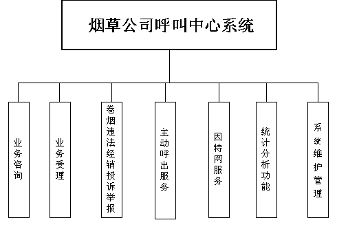 卷煙經(jīng)銷戶等客戶利用電話、傳真、電子郵件、因特網(wǎng)、手機(jī)、短消息等撥打統(tǒng)一的特服號碼(如800XXX或9XXXX)進(jìn)入煙草公司呼叫中心,本系統(tǒng)依托煙草公司各類業(yè)務(wù)技術(shù)支持系統(tǒng)和網(wǎng)絡(luò)系統(tǒng),實(shí)現(xiàn)煙草專賣局原有管理系統(tǒng)/業(yè)務(wù)系統(tǒng)及數(shù)據(jù)庫的無縫連接,通過人工受理或自動(dòng)語音服務(wù)等方式全天24小時(shí)不間斷地為客戶提供各種服務(wù)。