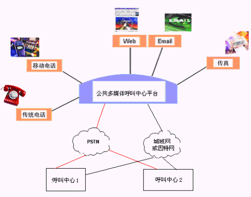 客戶利用電話、傳真、電子郵件、因特網(wǎng)、手機(jī)、短消息等進(jìn)入城市公共多媒體呼叫中心平臺(tái),本系統(tǒng)依托現(xiàn)有各專業(yè)呼叫中心/使用城市公共多媒體呼叫中心平臺(tái)租賃服務(wù)的企事業(yè)單位的各類業(yè)務(wù)技術(shù)支持系統(tǒng)和網(wǎng)絡(luò)系統(tǒng),通過(guò)人工受理或自動(dòng)語(yǔ)音服務(wù)等方式全天24小時(shí)不間斷地為客戶提供各種服務(wù)。