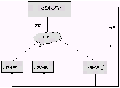 所謂PSTN+DDN的聯(lián)網(wǎng)方式是遠(yuǎn)端座席和主呼叫中心的語(yǔ)音和數(shù)據(jù)互連是分開(kāi)來(lái)的,彼此互相不干擾。語(yǔ)音方面遠(yuǎn)端座席和主呼叫中心的相聯(lián)與前兩種方式不同,是主呼叫中心通過(guò)外呼將話路接到遠(yuǎn)端座席處。數(shù)據(jù)方面遠(yuǎn)端座席和主呼叫中心的相聯(lián)仍然直接通過(guò)DDN相連。