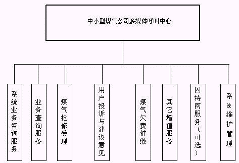 客戶利用電話、手機(jī)等撥打某一特服號(hào)碼(如9xxxx)進(jìn)入中小型煤氣公司多媒體呼叫中心系統(tǒng),本系統(tǒng)依托煤氣公司各類業(yè)務(wù)技術(shù)支持系統(tǒng)和網(wǎng)絡(luò)系統(tǒng),通過(guò)人工受理或自動(dòng)語(yǔ)音服務(wù)等方式全天24小時(shí)不間斷地為客戶提供各種服務(wù)。