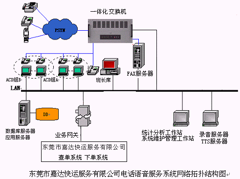 48個(gè)人工座席,落單組為30個(gè)人工座席(其中1個(gè)為落單組班長座席),查詢組為18個(gè)人工座席(其中1個(gè)為查詢組班長座席),48路全程同步錄音(可以實(shí)時(shí)設(shè)置或取消),64路IVR, 24路TTS通道,4路傳真,64條模擬中繼線路接入,支持普通話、廣東話等多語種服務(wù)的語音合成(TTS);提供各種話音、傳真集成服務(wù),提供辦公時(shí)間服務(wù)流程與非辦公時(shí)間服務(wù)流程,人工服務(wù)落單,自助落單,貨物在途狀況人工服務(wù)查詢,貨物在途狀況自助查詢,業(yè)務(wù)咨詢,語音信箱,傳真服務(wù)等業(yè)務(wù)功能,實(shí)現(xiàn)與后臺下單系統(tǒng),貨物在途狀況查詢系統(tǒng),GPS系統(tǒng)等的無縫集成,為客戶提供24小時(shí)全天候的快捷優(yōu)質(zhì)服務(wù)。