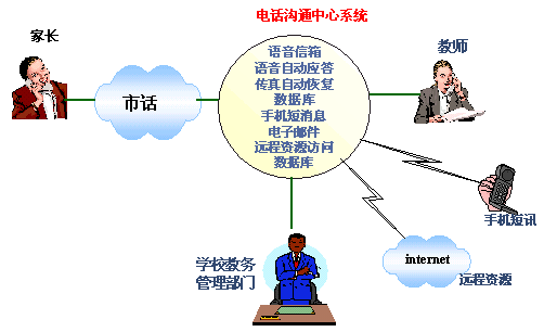 為此,很多學(xué)校都建立了自己的網(wǎng)站來作為對外宣傳和溝通的窗口,同時,不少學(xué)校還建立了校園網(wǎng),但僅僅通過INTERNET來獲取相應(yīng)的學(xué)生信息和學(xué)校信息是不夠的,畢竟不是每個家長都上網(wǎng)的,就算上網(wǎng)也只是偶爾,不能達到和學(xué)校經(jīng)常溝通的效果,尤其是在不很發(fā)達的地區(qū)這種現(xiàn)象尤為明顯。因此學(xué)校與家長的溝通必須建立在一種十分普及的通訊方式基礎(chǔ)上,而當(dāng)前最為普及的通訊方式莫過于電話了。