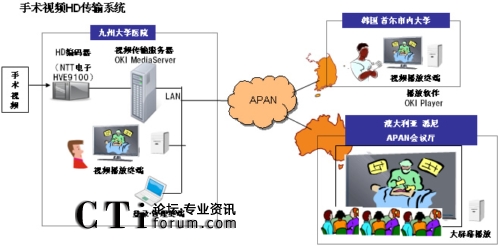 CTI論壇(ctiforum)2月22日消息(記者 張塵):近日沖電氣工業(yè)株式會(huì)社(OKI)子公司沖網(wǎng)絡(luò)株式會(huì)社和日本九州大學(xué)(校長(zhǎng):有川節(jié)夫,地址:日本福岡縣福岡市)一起成功完成向國(guó)外轉(zhuǎn)播HD(注1)手術(shù)視頻的測(cè)試。此項(xiàng)測(cè)試是2月8日至10日在澳大利亞悉尼召開的“第29屆Asia-Pacific