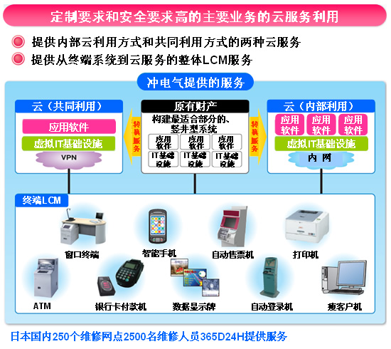 CTI論壇(ctiforum)12月9日消息(記者 楊佳林): 沖電氣開始銷售云計算服務(簡稱云服務)—“EXaaS™”,以滿足客戶在任意時間以任意方式使用的需求。“EXaaS™”是整套的IT周期管理云服務,包括系統(tǒng)引進咨詢、開發(fā)、采購和構(gòu)筑、運營支持。該服務超越了以往的云服務,其服務范圍涵蓋了客戶端的終端機以及客戶網(wǎng)絡的所有部分,實現(xiàn)了客戶IT投資成本最優(yōu)化。