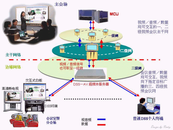 | 高品質 | 擁有先進的音頻、視頻編解碼核心技術。 采用MPEG4視頻壓縮傳輸,高品質圖像;主席端采用MP3編碼,客戶端采用G.711/GSM,音質高,支持音樂;聲音、視頻同步 支持全屏幕顯示,可外接電視、電視墻、投影等設備 |