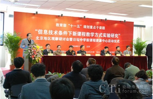 CTI論壇(ctiforum)11月11日消息(記者 潘婷):2009年11月5日, 教育部基礎(chǔ)教育課程教材發(fā)展中心在北京日壇中學(xué)隆重舉辦了“信息技術(shù)條件下新課程教學(xué)方式實(shí)驗(yàn)研究”北京地區(qū)觀摩研討會(huì)暨日壇中學(xué)課程資源中心啟動(dòng)儀式。到會(huì)的有教育部及北京市教委相關(guān)領(lǐng)導(dǎo)及北京市內(nèi)及外省市學(xué)校的的領(lǐng)導(dǎo)及老師600多人。