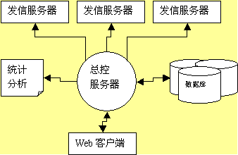 1. 以總控服務(wù)器為控制中心,控制一臺或多臺郵件發(fā)送服務(wù)器,每臺發(fā)送服務(wù)器管理一個(gè)或多個(gè)郵件隊(duì)列。控制中心控制郵件列表,任務(wù)列表、作業(yè)列表,并與業(yè)務(wù)數(shù)據(jù)庫通過數(shù)據(jù)庫接口連接,根據(jù)條件提取數(shù)據(jù),更新郵件發(fā)送列表,生成統(tǒng)計(jì)分析報(bào)告。