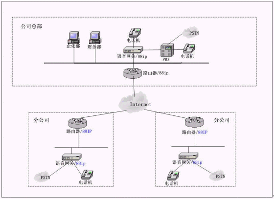 1) 在每個分公司安裝集成88IP的路由器,再通過路由器做端口映射到VOIP設備上。