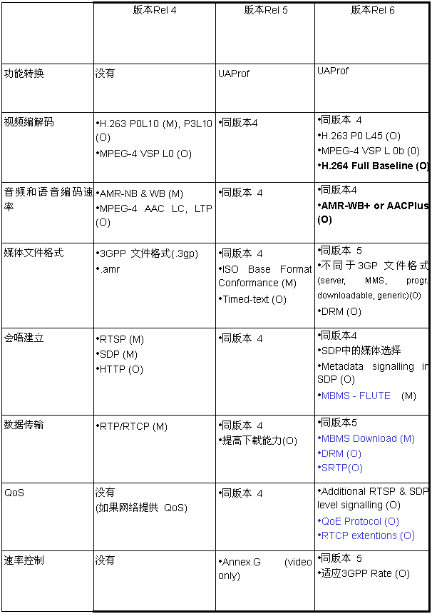 - 3GPP PSS隨著內(nèi)在的向后兼容性,從簡單的流式媒體服務規(guī)范(版本Rel 4)發(fā)展到更先進一代的服務規(guī)范(版本Rel 6)。