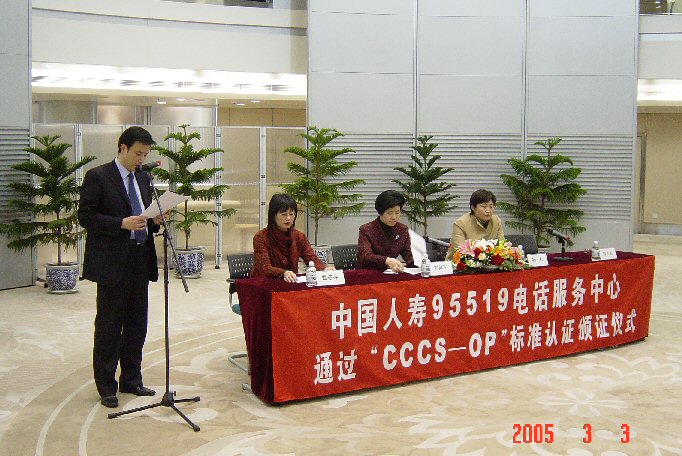 下午2點(diǎn),在中國人壽保險(xiǎn)股份有限公司總部舉行了隆重的頒證儀式。中國人壽保險(xiǎn)股份有限公司總部及江蘇、四川、深圳分公司的95519呼叫中心順利通過CCCS標(biāo)準(zhǔn)認(rèn)證。其中,中國人壽總部及江蘇省分公司95519呼叫中心獲準(zhǔn)CCCS五星級(jí)認(rèn)證評(píng)定,四川省及深圳市95519呼叫中心獲準(zhǔn)CCCS四星級(jí)認(rèn)證評(píng)定。