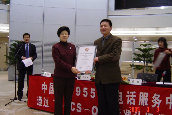 China)組委會(huì)聯(lián)合授予的"2004中國最佳呼叫中心"榮譽(yù)稱號(hào)。