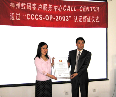 2005年6月2日,神州數(shù)碼呼叫中心通過了《全國呼叫中心運營績效標(biāo)準(zhǔn)》(CCCS-OP-2003)認(rèn)證,并獲得由中國信息化推進聯(lián)盟客戶關(guān)系管理專業(yè)委員會頒發(fā)的認(rèn)證證書(四星級客戶服務(wù)中心),成為國內(nèi)IT行業(yè)首家通過此認(rèn)證的呼叫中心。