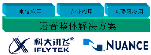 訊飛憑借自身在語音行業(yè)積累的經(jīng)驗(yàn)和優(yōu)勢,結(jié)合Nuance公司自身的技術(shù)優(yōu)勢,將為電信、證券、銀行、交通、電力、企業(yè)、互聯(lián)網(wǎng)等垂直行業(yè),提供業(yè)界最高性能的語音整體解決方案。