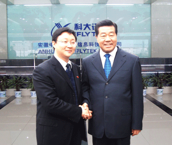 12月19日上午,中共中央政治局常委、全國政協(xié)主席賈慶林一行在安徽省委書記郭金龍、省長王金山等省市領(lǐng)導(dǎo)陪同下來到國家863計劃成果產(chǎn)業(yè)化基地——科大訊飛公司視察,賈慶林主席對科大訊飛在中文語音技術(shù)和產(chǎn)業(yè)化方面的成績給予充分肯定。上午8時30分,賈主席一行抵達訊飛語音產(chǎn)業(yè)大樓。中國科技大學(xué)黨委書記郭傳杰、科大訊飛總裁劉慶峰博士、基地總工陳濤及基地工作人員熱烈歡迎賈主席的到來。