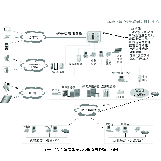 圖一是12315消費(fèi)者投訴受理系統(tǒng)物理結(jié)構(gòu)圖: