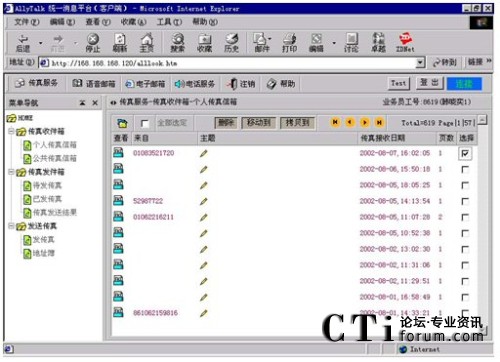 系統可以提供傳真信箱功能,一旦用戶發(fā)來傳真,主人可以在任何時間通過WEB提取發(fā)給自己的傳真。