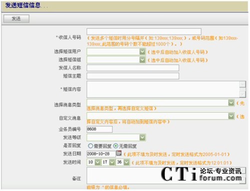 - 通過個人的Web方式的客戶端給系統預先設置好的個人或寫入對方手機號碼發(fā)送短信;